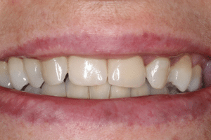 Páciensüknek egy nagyon régi, rögzített fogpótlása, valamint a front fogak területén elhasználódott és elkopott koronái voltak.
