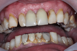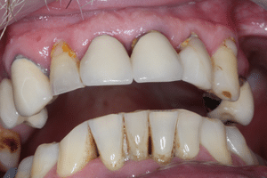 Paciensünk rossz szájhigiéniája és fogai ápolásának elhanyagolása miatt került fogászatunkra.