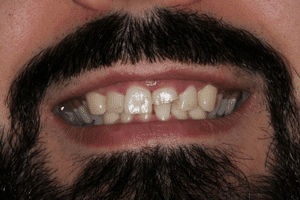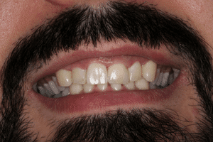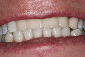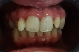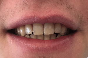 Páciensünknek esztétikai problémája mellett, komoly harapási rendellenessége volt. Az oldalsó fogai nem jól zártak össze, ezért nem tudta az ételt rendesen megőrölni.