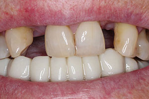 Páciensünknek hosszú évek óta tartó autoimmun betegsége van, ezért a cirkon fogpótlás híd elkészítése mellett döntöttünk.